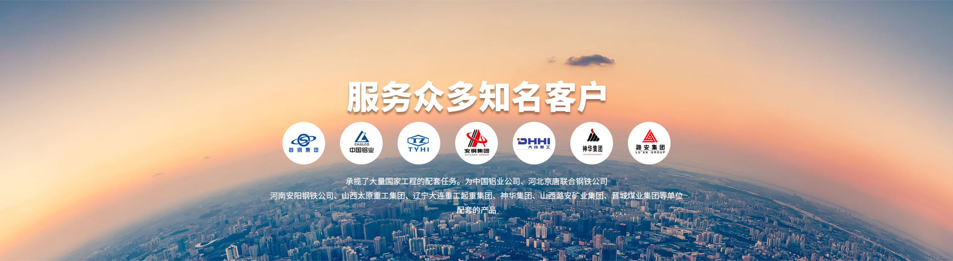 公司近年來承攬了大量國家工程的配套任務。為中國鋁業(yè)公司、河北京唐聯(lián)合鋼鐵公司、河南安陽鋼鐵公司、山西太原重工集團、遼寧大連重工·起重集團、神華集團、山西潞安礦業(yè)集團、晉城煤業(yè)集團等單位配套的產(chǎn)品